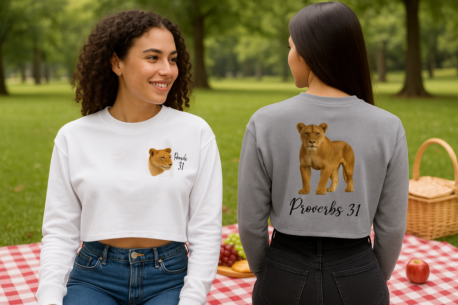 Carry strength and faith with style in the Proverbs 31 Lioness Cropped Fleece Crew. Featuring a bold lioness design on the back and the front, this piece blends power, dignity, and devotion into a modern fashion statement. The cropped cut and raw hem give it a trendy edge, while the fleece interior keeps it soft and comfortable. Perfect for layering or wearing on its own, this crew is a reminder of courage and liberation since 33 AD.